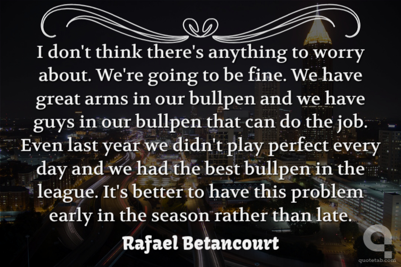 I don't think there's anything to worry about. We're going to be fine. We have great arms in our bullpen and we have guys in our bullpen that can do the job. Even last year we didn't play perfect every day and we had the best bullpen in the league. It's better to have this problem early in the season rather than late.