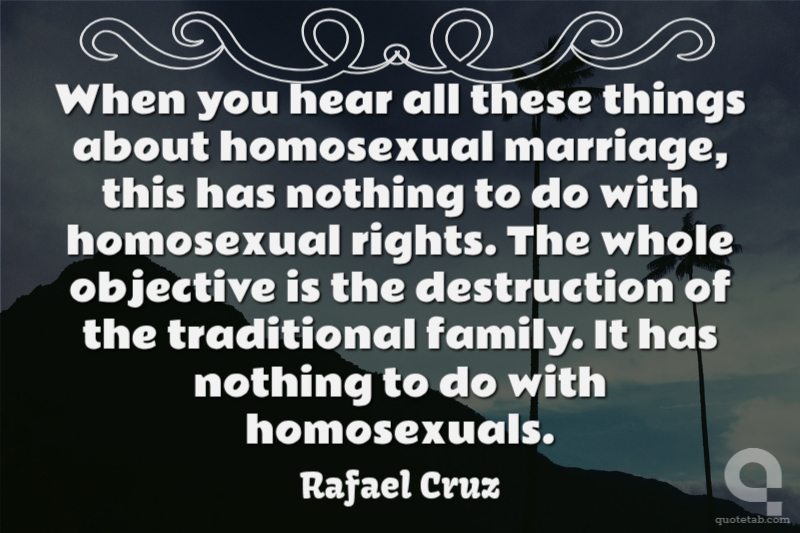 When you hear all these things about homosexual marriage, this has nothing to do with homosexual rights. The whole objective is the destruction of the traditional family. It has nothing to do with homosexuals.