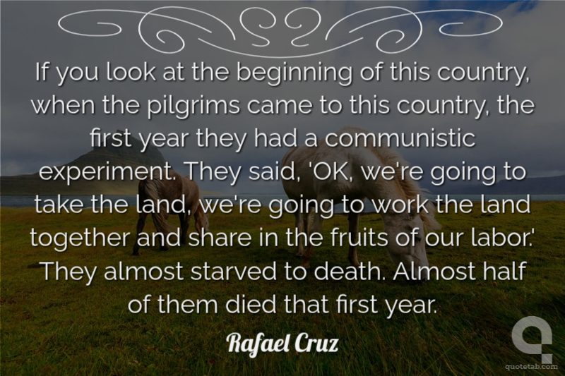 If you look at the beginning of this country, when the pilgrims came to this country, the first year they had a communistic experiment. They said, 'OK, we're going to take the land, we're going to work the land together and share in the fruits of our labor.' They almost starved to death. Almost half of them died that first year.