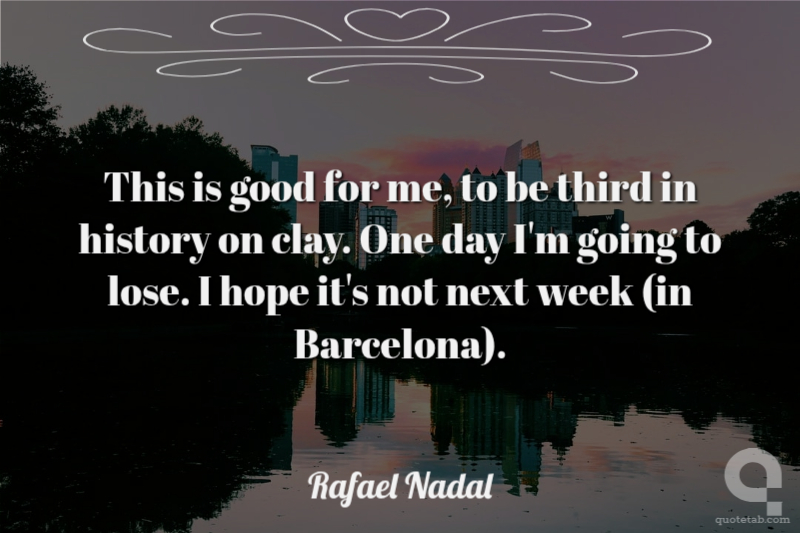 This is good for me, to be third in history on clay. One day I'm going to lose. I hope it's not next week (in Barcelona).