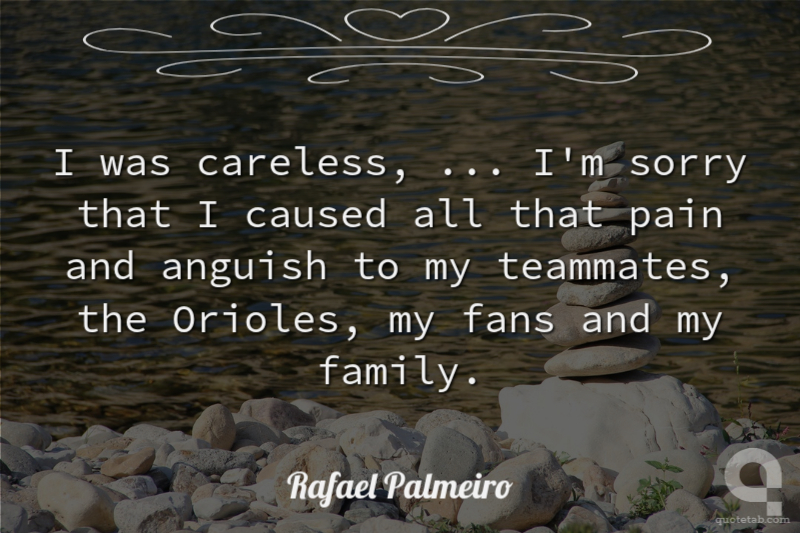 I was careless, ... I'm sorry that I caused all that pain and anguish to my teammates, the Orioles, my fans and my family.