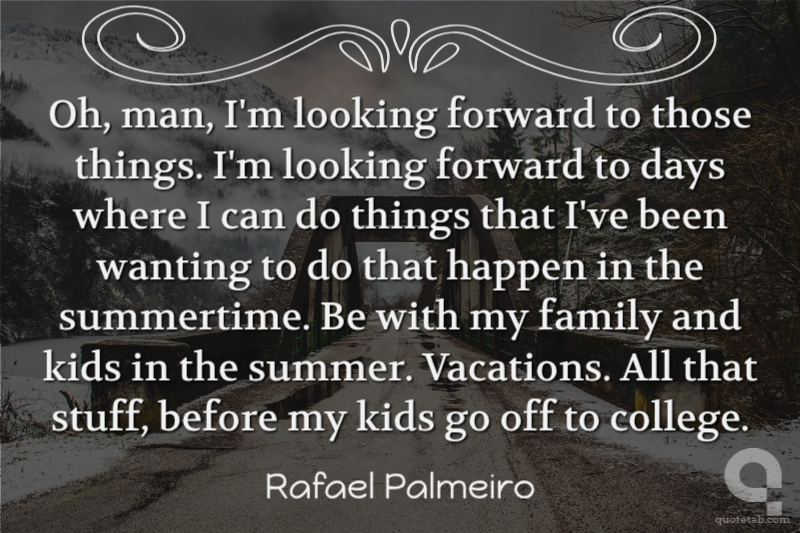 Oh, man, I'm looking forward to those things. I'm looking forward to days where I can do things that I've been wanting to do that happen in the summertime. Be with my family and kids in the summer. Vacations. All that stuff, before my kids go off to college.