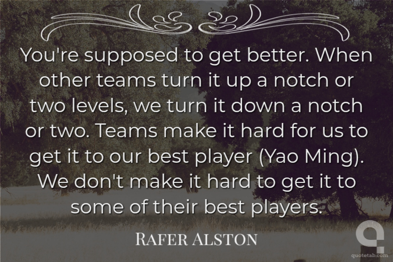 You're supposed to get better. When other teams turn it up a notch or two levels, we turn it down a notch or two. Teams make it hard for us to get it to our best player (Yao Ming). We don't make it hard to get it to some of their best players.