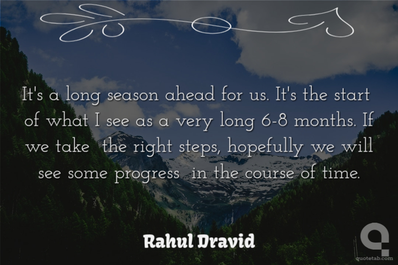 It's a long season ahead for us. It's the start of what I see as a very long 6-8 months. If we take the right steps, hopefully we will see some progress in the course of time.
