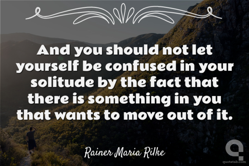 And you should not let yourself be confused in your solitude by the fact that there is something in you that wants to move out of it.