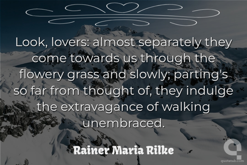 Look, lovers: almost separately they come towards us through the flowery grass and slowly; parting's so far from thought of, they indulge the extravagance of walking unembraced.
