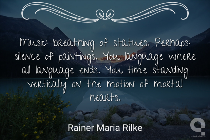 Music: breathing of statues. Perhaps: silence of paintings. You language where all language ends. You time standing vertically on the motion of mortal hearts.