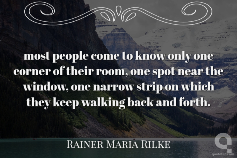 most people come to know only one corner of their room, one spot near the window, one narrow strip on which they keep walking back and forth.