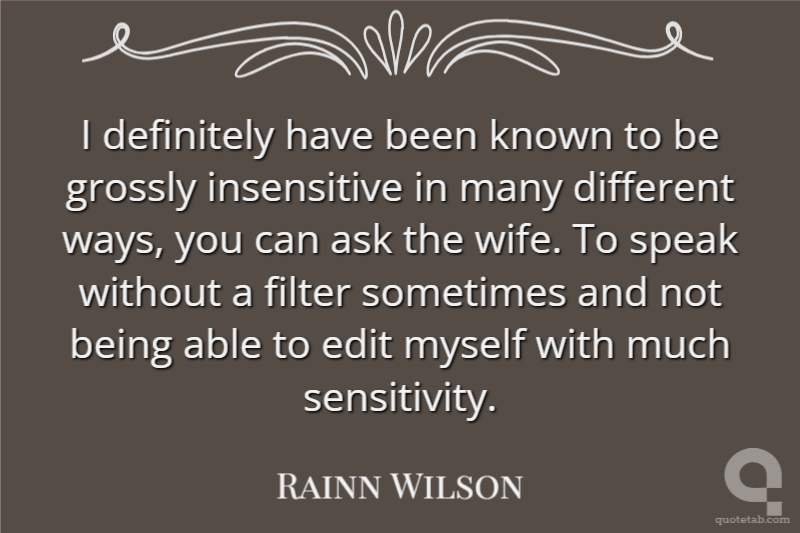 I definitely have been known to be grossly insensitive in many different ways, you can ask the wife. To speak without a filter sometimes and not being able to edit myself with much sensitivity.