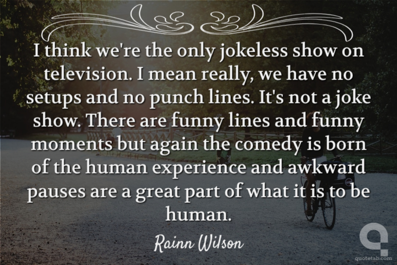 I think we're the only jokeless show on television. I mean really, we have no setups and no punch lines. It's not a joke show. There are funny lines and funny moments but again the comedy is born of the human experience and awkward pauses are a great part of what it is to be human.