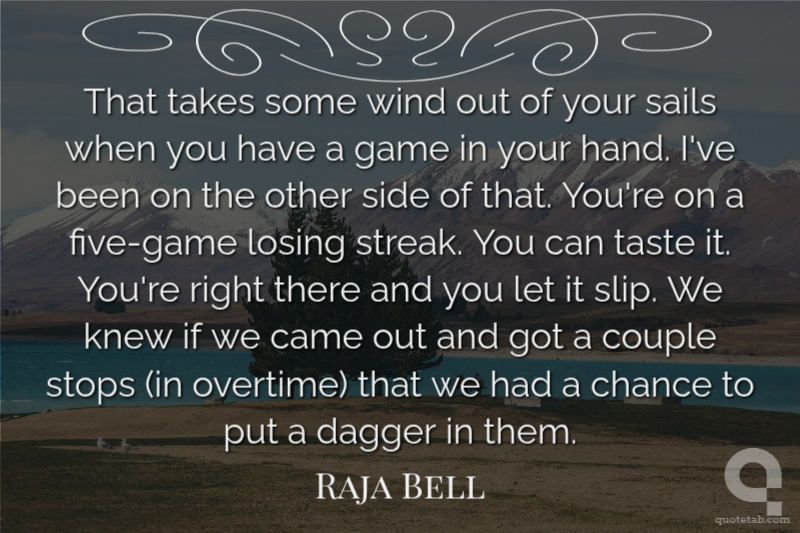 That takes some wind out of your sails when you have a game in your hand. I've been on the other side of that. You're on a five-game losing streak. You can taste it. You're right there and you let it slip. We knew if we came out and got a couple stops (in overtime) that we had a chance to put a dagger in them.