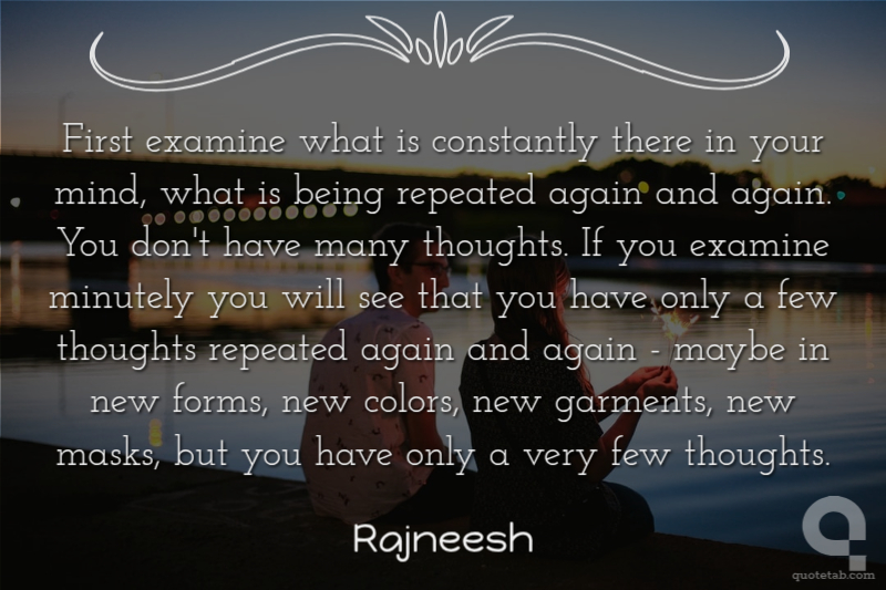 First examine what is constantly there in your mind, what is being repeated again and again. You don't have many thoughts. If you examine minutely you will see that you have only a few thoughts repeated again and again - maybe in new forms, new colors, new garments, new masks, but you have only a very few thoughts.