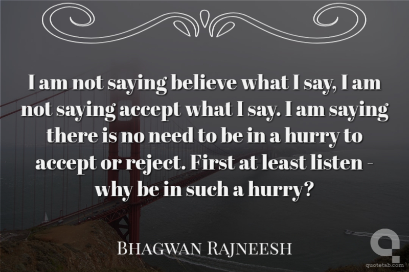 I am not saying believe what I say, I am not saying accept what I say. I am saying there is no need to be in a hurry to accept or reject. First at least listen - why be in such a hurry?