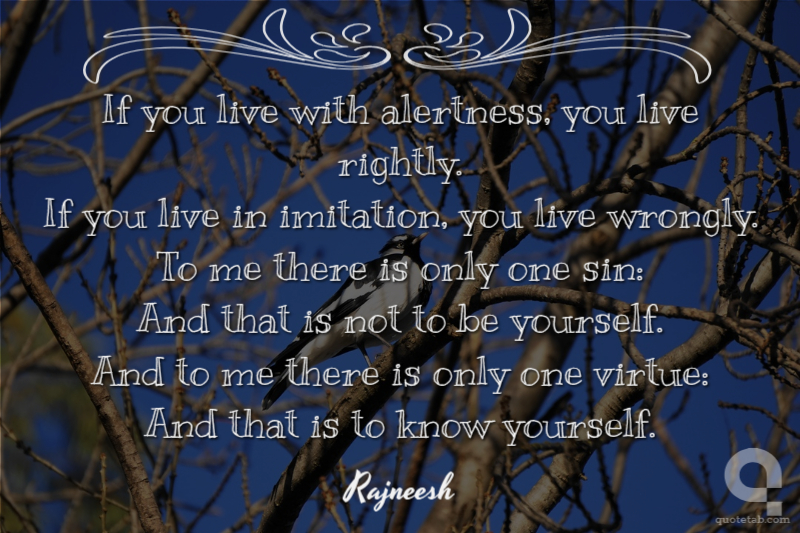 If you live with alertness, you live rightly. If you live in imitation, you live wrongly. To me there is only one sin: And that is not to be yourself. And to me there is only one virtue: And that is to know yourself.