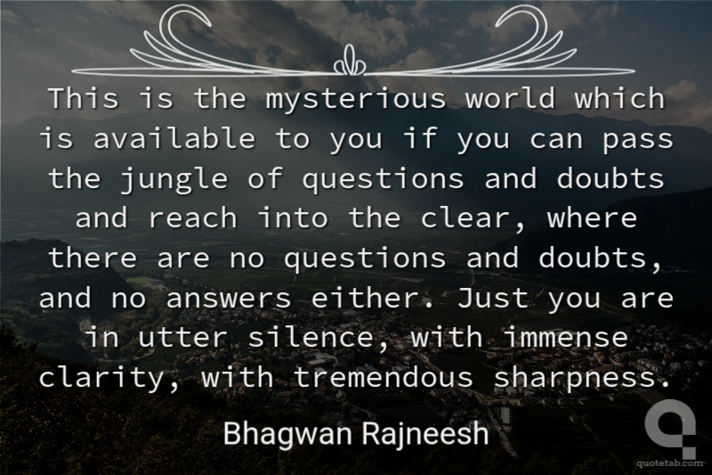 This is the mysterious world which is available to you if you can pass the jungle of questions and doubts and reach into the clear, where there are no questions and doubts, and no answers either. Just you are in utter silence, with immense clarity, with tremendous sharpness.
