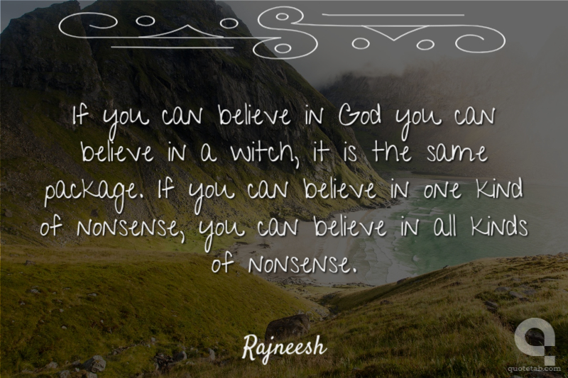 If you can believe in God you can believe in a witch, it is the same package. If you can believe in one kind of nonsense, you can believe in all kinds of nonsense.