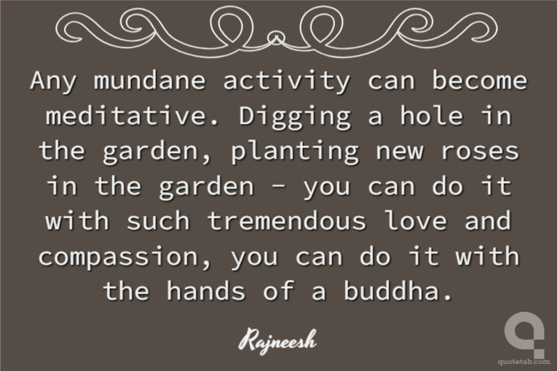 Any mundane activity can become meditative. Digging a hole in the garden, planting new roses in the garden - you can do it with such tremendous love and compassion, you can do it with the hands of a buddha.