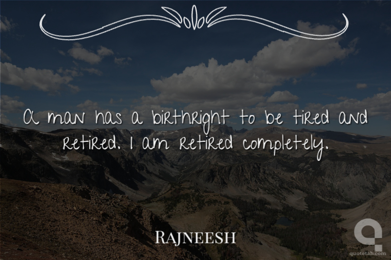 A man has a birthright to be tired and retired. I am retired completely.