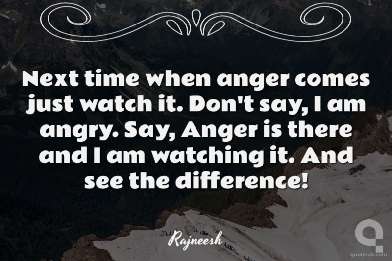 Next time when anger comes just watch it. Don't say, I am angry. Say, Anger is there and I am watching it. And see the difference!