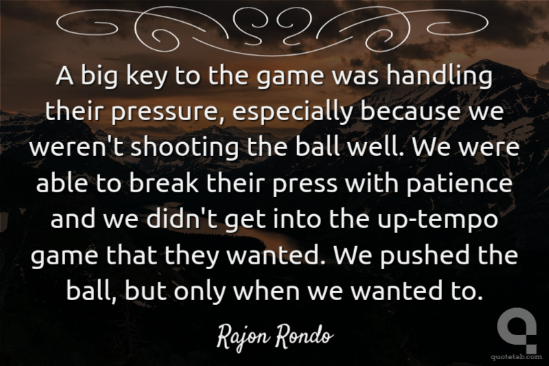A big key to the game was handling their pressure, especially because we weren't shooting the ball well. We were able to break their press with patience and we didn't get into the up-tempo game that they wanted. We pushed the ball, but only when we wanted to.