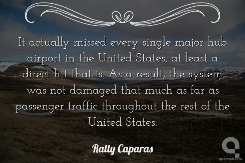 It actually missed every single major hub airport in the United States, at least a direct hit that is. As a result, the system was not damaged that much as far as passenger traffic throughout the rest of the United States.