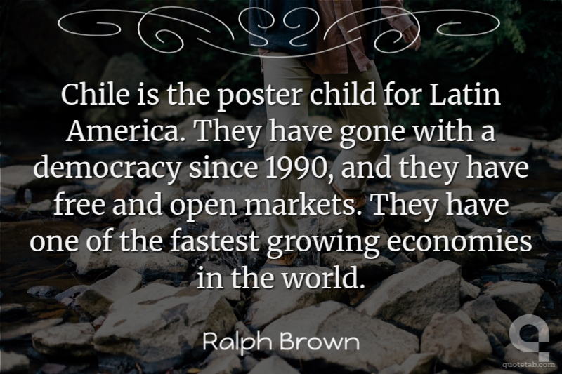 Chile is the poster child for Latin America. They have gone with a democracy since 1990, and they have free and open markets. They have one of the fastest growing economies in the world.