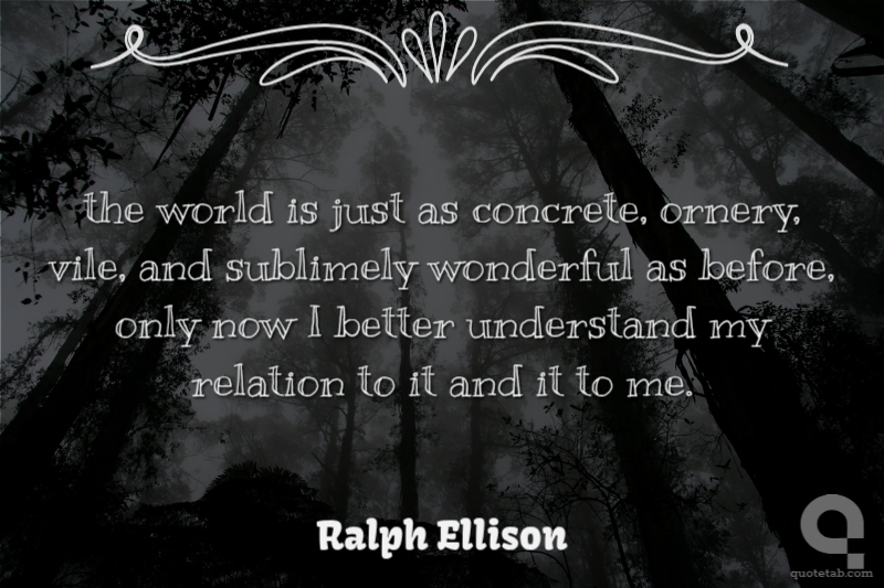 the world is just as concrete, ornery, vile, and sublimely wonderful as before, only now I better understand my relation to it and it to me.