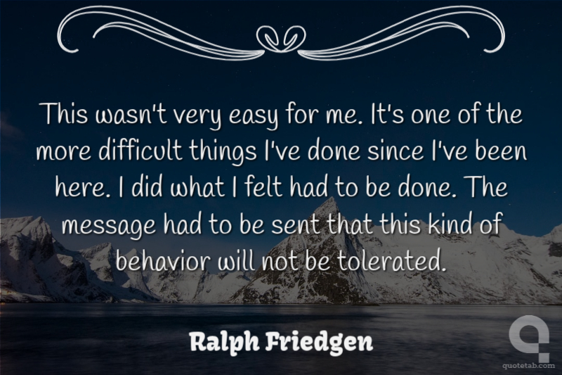 This wasn't very easy for me. It's one of the more difficult things I've done since I've been here. I did what I felt had to be done. The message had to be sent that this kind of behavior will not be tolerated.