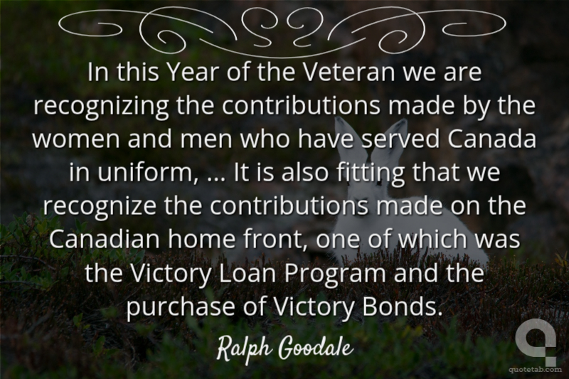 In this Year of the Veteran we are recognizing the contributions made by the women and men who have served Canada in uniform, ... It is also fitting that we recognize the contributions made on the Canadian home front, one of which was the Victory Loan Program and the purchase of Victory Bonds.
