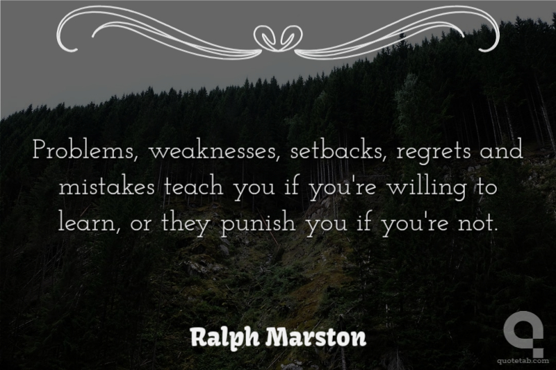 Problems, weaknesses, setbacks, regrets and mistakes teach you if you're willing to learn, or they punish you if you're not.