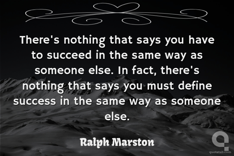 There's nothing that says you have to succeed in the same way as someone else. In fact, there's nothing that says you must define success in the same way as someone else.