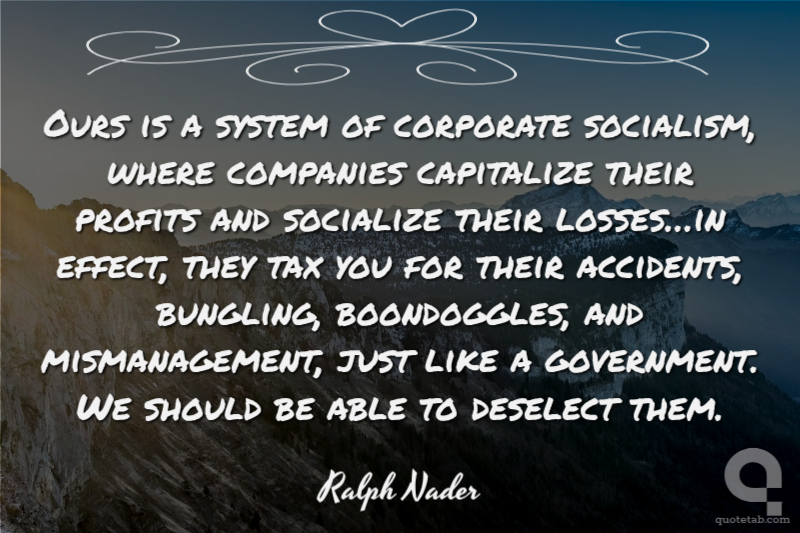 Ours is a system of corporate socialism, where companies capitalize their profits and socialize their losses…in effect, they tax you for their accidents, bungling, boondoggles, and mismanagement, just like a government. We should be able to deselect them.