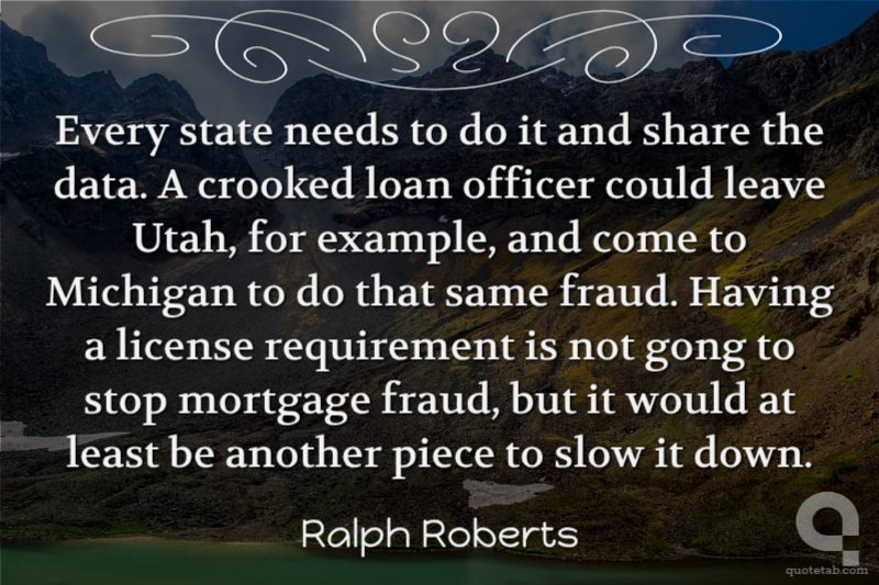 Every state needs to do it and share the data. A crooked loan officer could leave Utah, for example, and come to Michigan to do that same fraud. Having a license requirement is not gong to stop mortgage fraud, but it would at least be another piece to slow it down.
