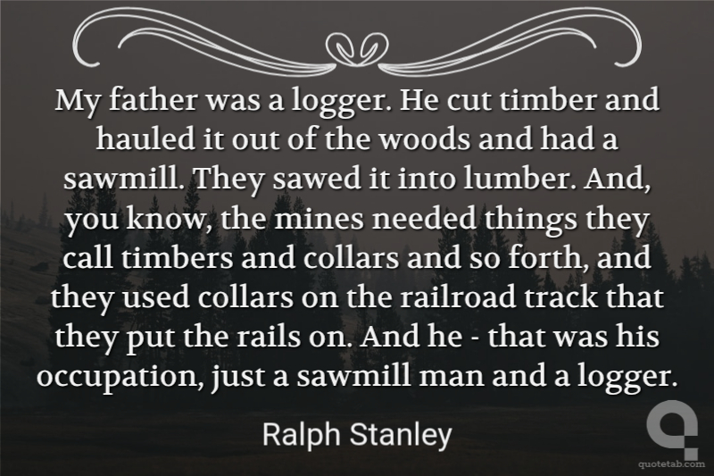 My father was a logger. He cut timber and hauled it out of the woods and had a sawmill. They sawed it into lumber. And, you know, the mines needed things they call timbers and collars and so forth, and they used collars on the railroad track that they put the rails on. And he - that was his occupation, just a sawmill man and a logger.