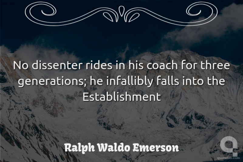 No dissenter rides in his coach for three generations; he infallibly falls into the Establishment