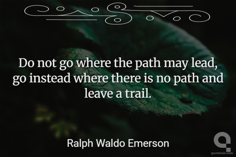 Do not go where the path may lead, go instead where there is no path and leave a trail.