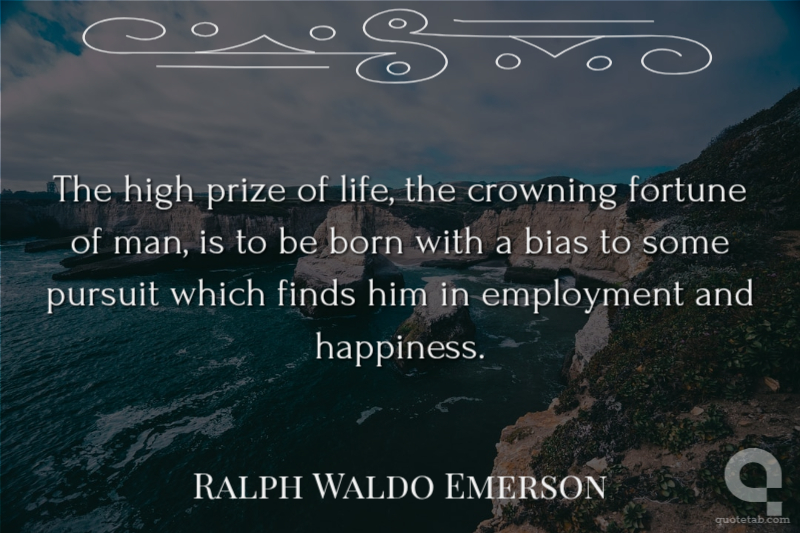 The high prize of life, the crowning fortune of man, is to be born with a bias to some pursuit which finds him in employment and happiness.