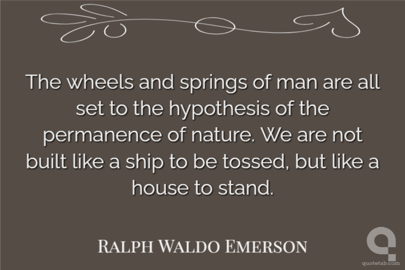 The wheels and springs of man are all set to the hypothesis of the permanence of nature. We are not built like a ship to be tossed, but like a house to stand.