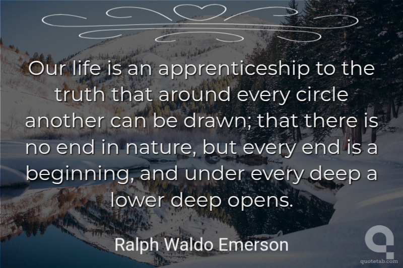 Our life is an apprenticeship to the truth that around every circle another can be drawn; that there is no end in nature, but every end is a beginning, and under every deep a lower deep opens.