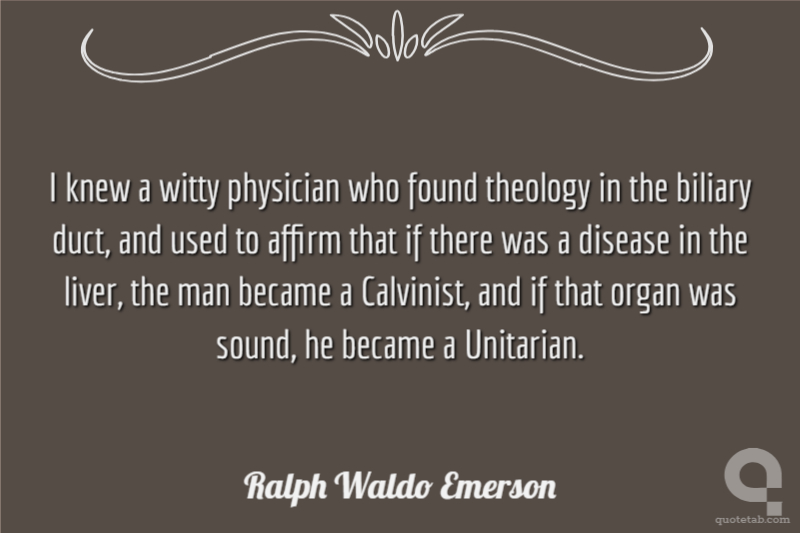 I knew a witty physician who found theology in the biliary duct, and used to affirm that if there was a disease in the liver, the man became a Calvinist, and if that organ was sound, he became a Unitarian.