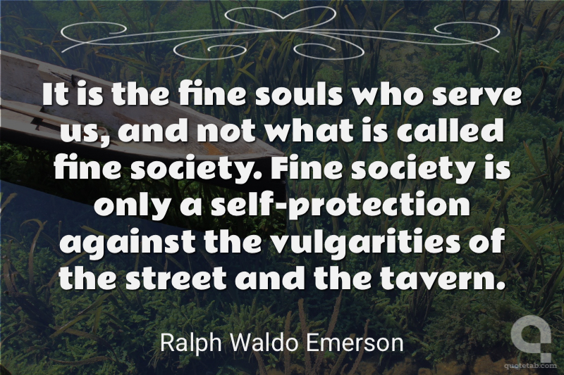 It is the fine souls who serve us, and not what is called fine society. Fine society is only a self-protection against the vulgarities of the street and the tavern.