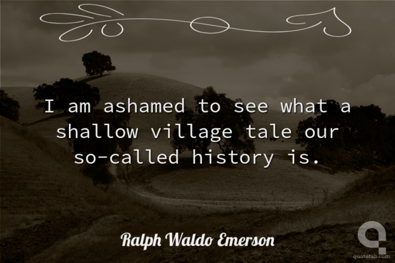 I am ashamed to see what a shallow village tale our so-called History is. How many times must we say Rome, and Paris, and Constantinople! What does Rome know of rat and lizard? What are Olympiads and Consulates to these neighboring systems of being? Nay, what food or experience or succor have they for the Esquimaux seal-hunter, or the Kanaka in his canoe, for the fisherman, the stevedore, the porter?