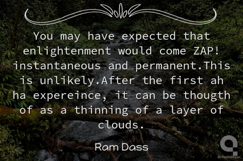 You may have expected that enlightenment would come ZAP! instantaneous and permanent.This is unlikely.After the first ah ha expereince, it can be thougth of as a thinning of a layer of clouds.