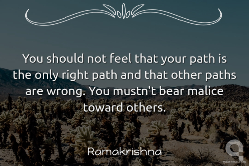 You should not feel that your path is the only right path and that other paths are wrong. You mustn't bear malice toward others.