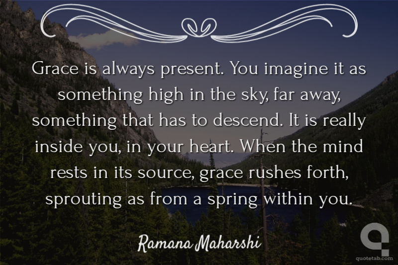 Grace is always present. You imagine it as something high in the sky, far away, something that has to descend. It is really inside you, in your heart. When the mind rests in its source, grace rushes forth, sprouting as from a spring within you.