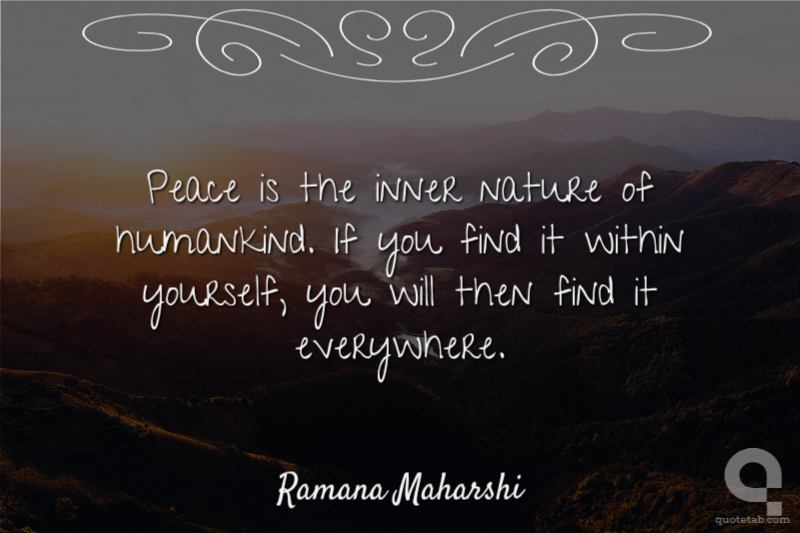 Peace is the inner nature of humankind. If you find it within yourself, you will then find it everywhere.