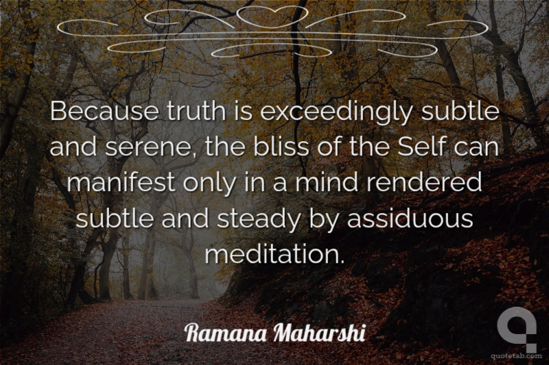 Because truth is exceedingly subtle and serene, the bliss of the Self can manifest only in a mind rendered subtle and steady by assiduous meditation.