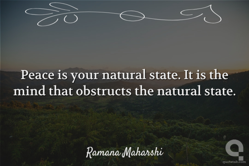 Peace is your natural state. It is the mind that obstructs the natural state.
