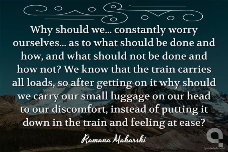 Why should we... constantly worry ourselves... as to what should be done and how, and what should not be done and how not? We know that the train carries all loads, so after getting on it why should we carry our small luggage on our head to our discomfort, instead of putting it down in the train and feeling at ease?