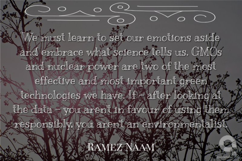 We must learn to set our emotions aside and embrace what science tells us. GMOs and nuclear power are two of the most effective and most important green technologies we have. If - after looking at the data - you aren't in favour of using them responsibly, you aren't an environmentalist.
